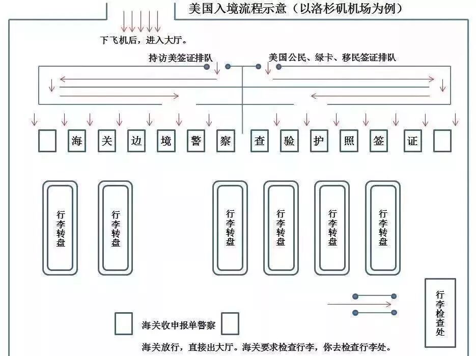 担心入境时不熟悉语言和需要转机的情况下是个挺困难的事,在这里附上美国机场登陆流程。